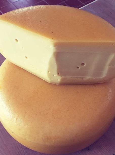 Paste: Semi- hard cheese with a smooth, pale yellow paste, paste becomes harder and slightly darker with age