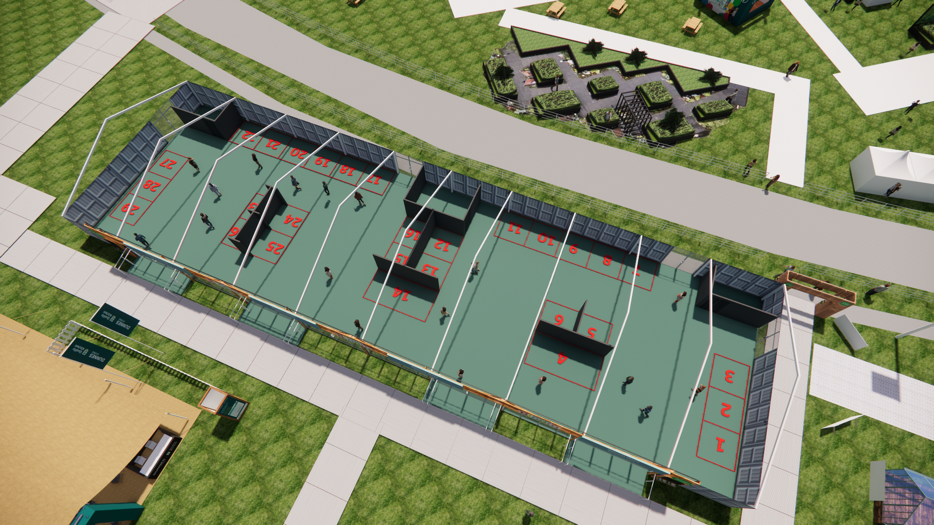 Exhibitor stands within the Bloom Inn are space only allocations, which are defined by the marquee back wall, storeroom walls, or by structural support walls, located in the central blocks.