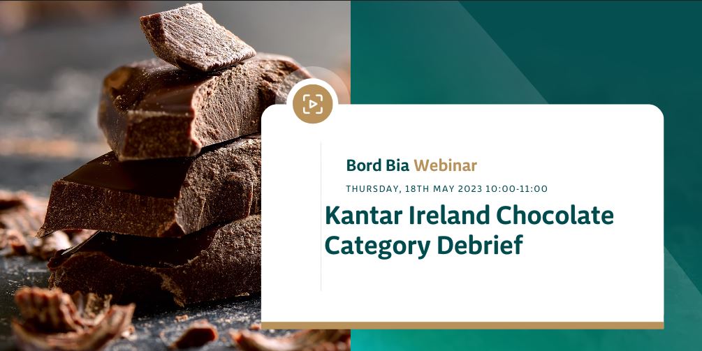 Bord Bia invites you to join us on Thursday 18th May at 10am for a debrief on the performance of the chocolate category in the Irish market for the 12 months to Easter 2023. This webinar will use Kantar data to give you a topline overview of the chocolate category, including the performance of Christmas 2022. Learn about the performance of the main retailers and how the category has evolved post Covid.