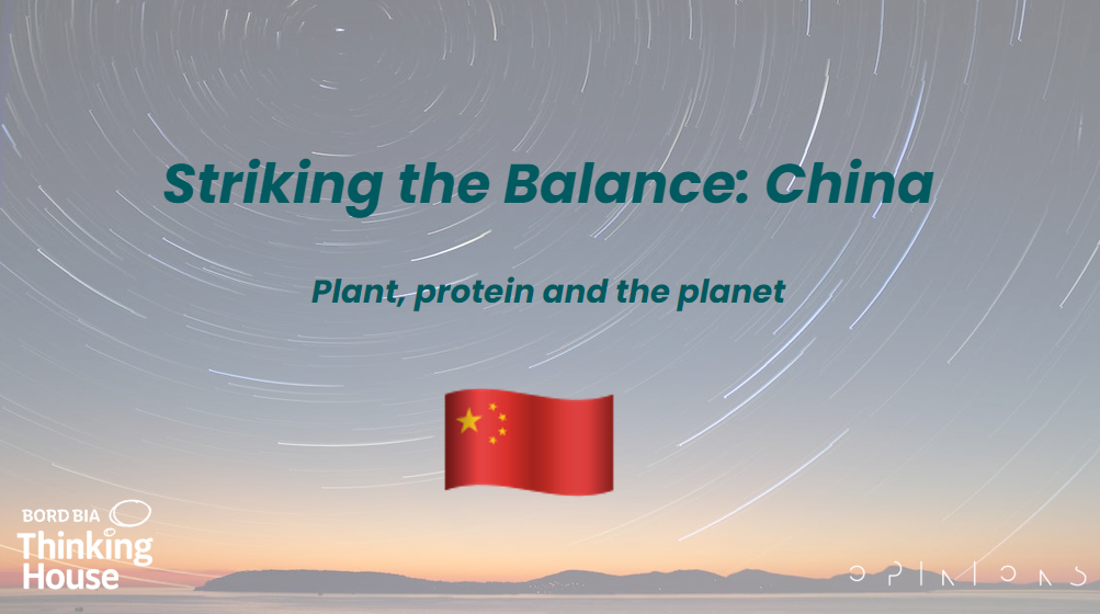 This study builds on our previous Striking the Balance work launched earlier in the year. Evelyn Chiang, Bord Bia Insight & Planning Specialist in Asia will share with us the nuances that makes the China story different, particularly in the context of the consumer relationship with plant based diets and proteins.