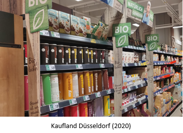 Growing consumer concerns for food safety, the natural environment and their overall health are also fuelling demand for organic products, leading to increased use of organic certification labels in German food and drink launches. 58% of Germans who buy organic food and drink claim to do so because these products are GMO-free. For over half of consumers (54%), the fact that organic food and drink products do not contain pesticides and chemicals is an important factor (Mintel, 2018). This is very predominant in the breakfast category as seen by the eye-catching display in Kaufland (above).