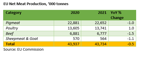 EU Meat Production Set to Fall for 2021