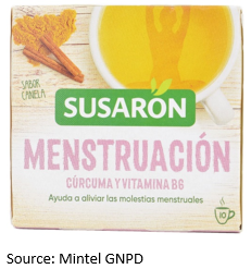 When it comes to PMS, the symptoms are both physical and emotional. There is still research to be done on how food and drink may help alleviate these, but Mintel notes that the The American College of Obstetricians and Gynaecologists do advise that diet can be beneficial (Mintel, 2020). There have been a number of hot drink launches around the world which claim to offer physical relief, like Susaron Cinnamon Infusion Tea for menstruation from Spain.