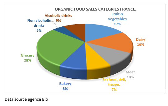Mainstream supermarkets are the main outlets for organic food sales in France, followed by specialised organic food outlets such as Biocoop, La Vie Claire, Biomonde, Naturalia. The main categories sold under the organic label are general groceries followed by Fruit & vegetables, dairy and meat. Growth was noted mainly in the frozen category (+31%); beer (+24%) and groceries (+16%).