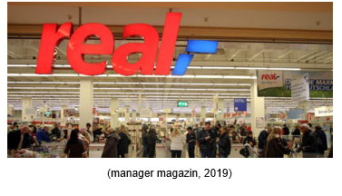 In March 2020, it was announced that the new owners are looking to operate only a small number of Real stores- a core of approx. 50 and for a limited period of time (24 months). The remaining locations will be sold to other retailers including Edeka (53 stores) and Kaufland (88 stores) and a further 30 stores will be closed completely (Klug, 2020).