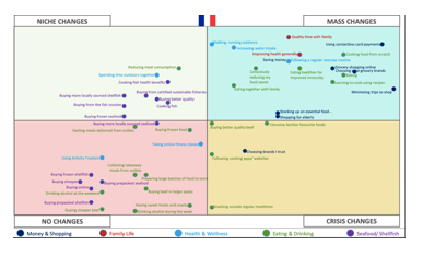 Our validators would say that French consumers will continue to have concerns around health and immunity, whilst also reappraising their love of food and what they cook. Saving money however also has significant importance given the impending economic challenges ahead. In that context better quality and locally consumed appear to be somewhat more niche like behavioural changes.