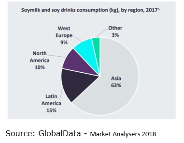 When we look at consumption of soymilk and soy drinks, Asia is by far the greatest contributor, accounting for 63% of all global soymilk volumes versus 15% in Latin America, 10% in North America and 9% in Western Europe (GlobalData, 2018)7. Whilst Asian consumers may appear to be the most receptive to new products in this space, GlobalData highlight that new foreign entrants to the market should proceed with caution. Any new product launches would need to be innovative and have a clear point of difference in order to stand out in a market crowded with local brands.