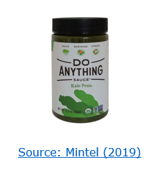 To illustrate, there is a high consumer interest in the US for sauces that are freshly made, supporting the notion that fresh ingredients can deliver superior taste. (Mintel, 2019) This growing focus among pasta sauce brands to adopt clean and simple ingredients to convey artisanal and fresh quality produce can be seen in the example of Do Anything Sauce Kale Pesto. This is a ‘veggie-rich meal-maker sauce’ which is made with only real, organic ingredients and it has been cold pressure processed to preserve the nutrients of ingredients. (Mintel, 2019)