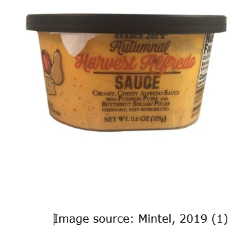 Trader Joe’s have recognised this opportunity and they have introduced an Autumnal Harvest Alfredo Sauce which is made with produce that is ripe during the autumn, like pumpkin puree and butternut squash pieces (Mintel, 2019)(1).