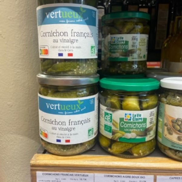 Figure 1: Pickles with organic certification, along with the Nutriscore and Made in France labels. Source: Órla Murphy Bord Bia