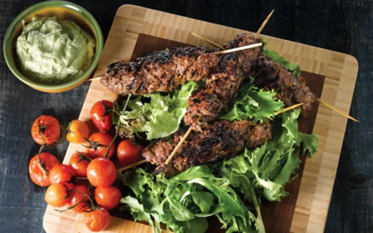 With wet hands shape the mixture onto 4 skewers and grill or barbecue for 5-6 minutes on each side until fully cooked.