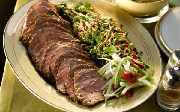 - 600g soba noodles or egg noodles, cooked, drained