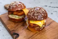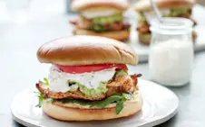 Remove the traybake from the oven and crumble or break up the goat’s cheese on top. Finish with the parsley and leave for a couple of minutes so that the goat’s cheese has started to melt. Serve straight to the table.