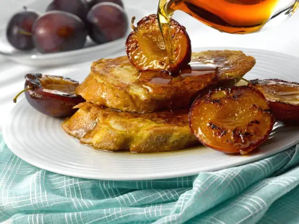 When all the plums are ready serve with the French toast and maple syrup.