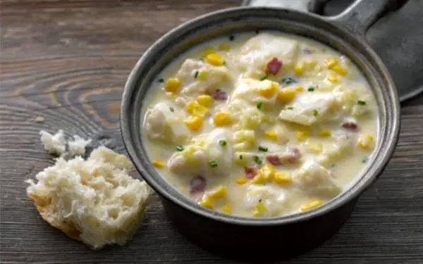 Pour back into the saucepan, add the sweetcorn, bacon, fish and the potatoes and leeks you have set aside.