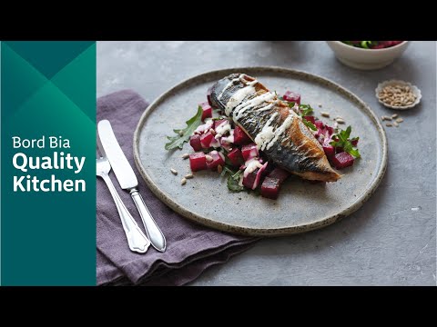 To serve: Mix the rocket leaves through the beetroot, taste and season. Sprinkle over the sunflower seeds. Spoon a little of the salad onto each plate and lay the mackerel fillets on top. Spoon over a little Mustard Sour Cream. Serve the remaining salad on the side.