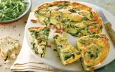 Cook the potatoes in a large saucepan of boiling water until just soft. This will take about 10 minutes. Drain and then slice. Place in a large bowl.