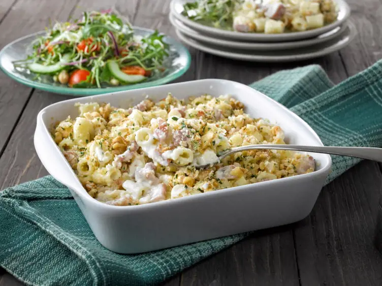 Mix together the breadcrumbs, walnuts, remaining cheese and parsley and sprinkle over.