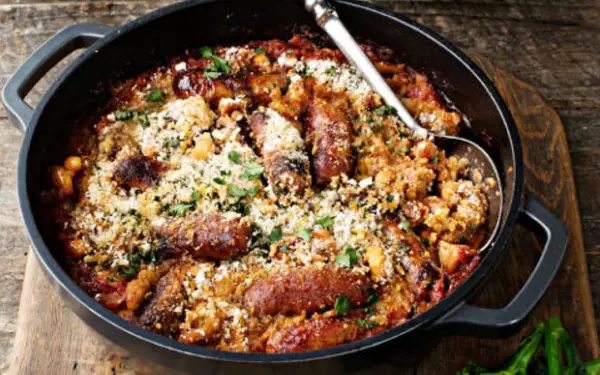 Heat the oil in a 3 litre flameproof casserole dish over a medium heat and brown the sausages. Remove to a plate.