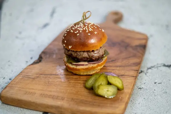 Copy TextMix the lamb patty ingredients together and shape into 50g patties, circular in shape. Cook in a hot pan for 1 minute on either side.