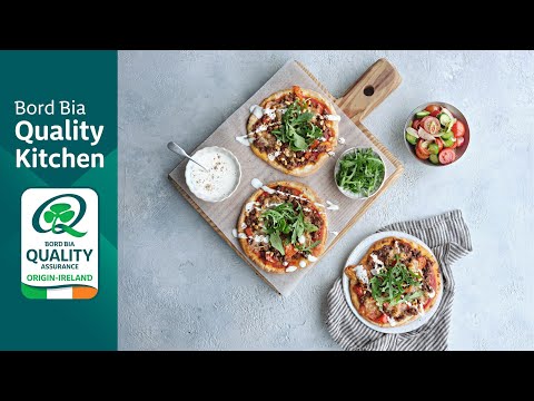 To prepare the toppings: Heat a non-stick frying pan over medium-high heat, season the lamb and add it to the pan. Cook for 4-5 minutes or until it is brown. Remove the lamb using a slotted spoon and set aside. Wipe out the pan with a piece of kitchen paper.