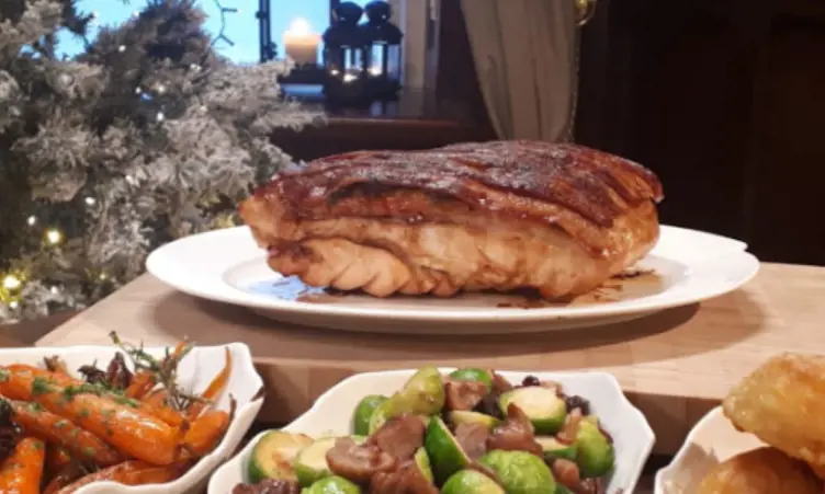 Place the prepared turkey breast in the oven and calculate your time, 20 minutes per 450g plus 20 minutes. The turkey breast will cook much quicker than a full turkey, so make sure to keep basting; you can cover with foil if it’s browning too quickly. When cooked cover with foil to rest and keep warm.