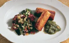 Serve with celeriac remoulade and mixed salad leaves