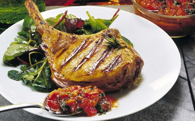 Grill or barbecue the chops for 5-6 mins on each side and serve with the Salsa Rossa, some roasted peppers and salad.