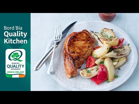 Place the potatoes, fennel and peppers in a roasting tin big enough to hold the vegetables and chops in a single layer.