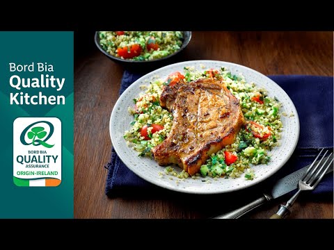 To make the salad: While the chops are cooking combine the bulgur wheat, tomatoes, cucumber, scallions, parsley, mint, remaining tablespoon of oil and remaining 3 tablespoons of lemon juice. Season with a little salt and black pepper.