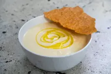 Blitz the soup with a hand-held stick blender and season to taste. Bring to the boil, then reduce the heat and simmer gently for 10-15 minutes until slightly reduced and nicely thickened, stirring occasionally. Ladle into bowls and swirl in the cream, then garnish with croutons and black pepper to serve.